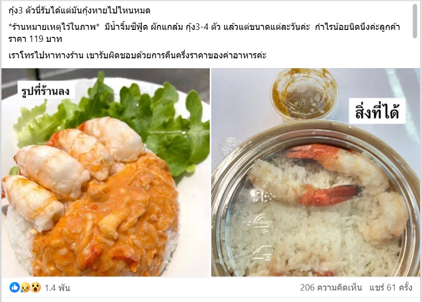 ที่สุดของความไม่ตรงปก สั่งข้าวกุ้งแกะราคาเป็นร้อย แต่สิ่งที่ได้เกินคำว่าผิดหวัง