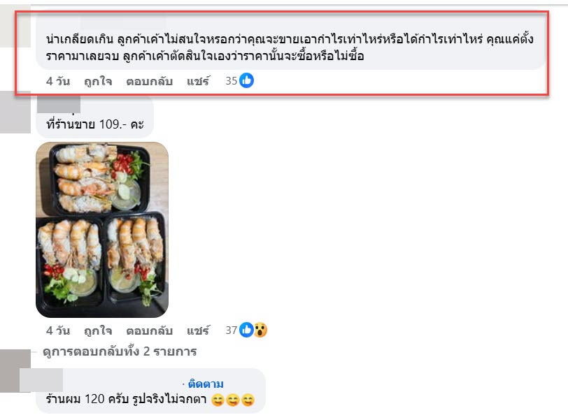 “น่าเกลียดเกิน ลูกค้าเค้าไม่สนใจหรอกว่าคุณจะขายเอากำไรเท่าไหร่หรือได้กำไรเท่าไหร่ คุณแค่ตั้งราคามาเลยจบ ลูกค้าเค้าตัดสินใจเองว่าราคานั้นจะซื้อหรือไม่ซื้อ”