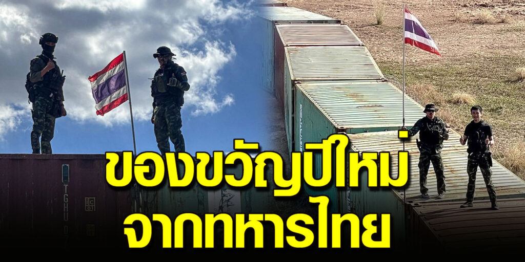 ทหารไทยติดตั้งตู้คอนเทนเนอร์พร้อมปักธงชาติ เป็นของขวัญปีใหม่ไห้กับคนไทย