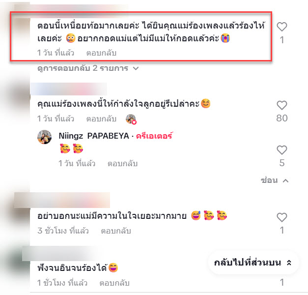 “ตอนนี้เหนื่อยท้อมากเลยค่ะ ได้ยินคุณแม่ร้องเพลงแล้วร้องไห้เลยค่ะ อยากกอดแม่แต่ไม่มีแม่ให้กอดแล้วค่ะ”