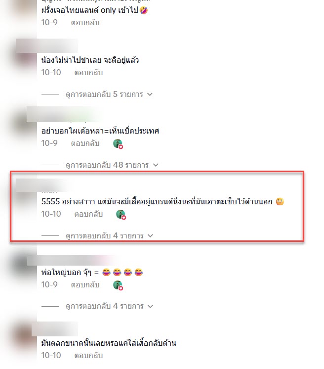 “5555 อย่างฮาาา แต่มันจะมีเสื้ออยู่แบรนด์นึงนะที่มันเอาตะเข็บไว้ด้านนอก“