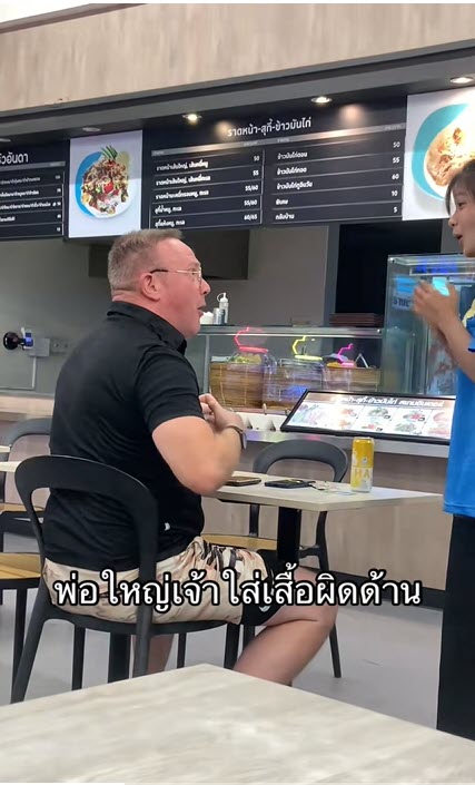 เห็นแล้วทนไม่ไหว เมื่อเห็นฝรั่งใส่เสื้อกลับด้าน เลยรวบรวมความกล้าเข้าไปบอก