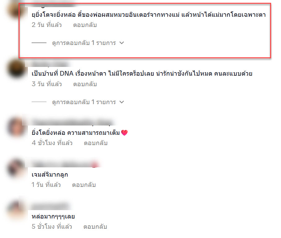 “ยุยิ่งโตจะยิ่งหล่อ ตี๋ของพ่อผสมหมวยอินเตอร์จากทางแม่ แล้วหน้าได้แม่มากโดยเฉพาะตา”