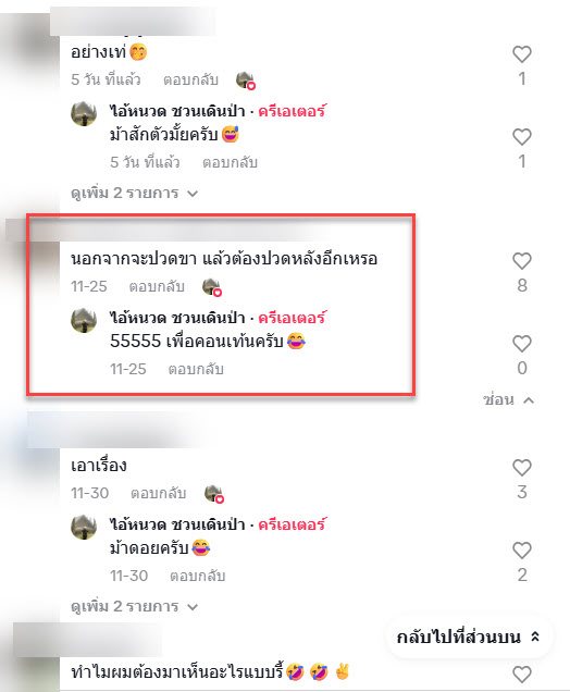 จากคลิปนก็มีหลายคนเข้ามาแสดงความคิดเห็นกันอย่างมากมายทั้งบอกว่า”นอกจากจะปวดขา แล้วต้องปวดหลังอีกเหรอ”