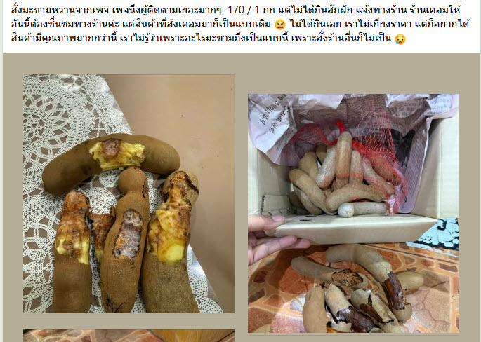 สั่งมะขามหวานออนไลน์ กินไม่ได้ส่งเคลมแล้วยังเจอแบบเดิม