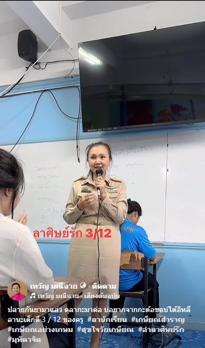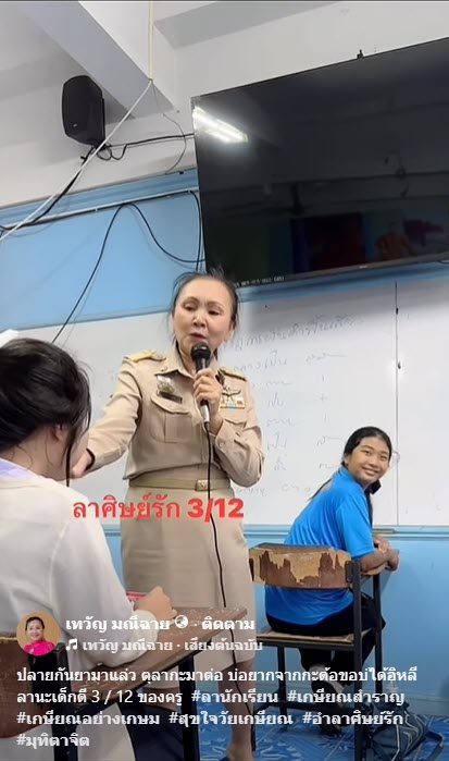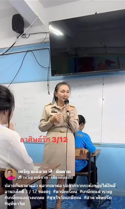 เป็นอีกหนึ่งคลิปที่ดูแล้วหวานซึ้งกินใจมากๆ เมื่อบัญชีผู้ใช้ TikTok ที่ใช้ชื่อ เทวัญ มณีฉาย ได้ออกมาโพสต์คลิปที่คุณครูร้องลำกลอนเพื่อลาศิษย์ในวันเกษียณอายุราชการ โดยจากในโพสต์นั้นได้ระบุว่า “ปลายกันยามาแล่ว ตุลากะมาต่อ บ่อยากจากกะด้อขอบ่ได้อิหลี ลานะเด็กดี 3 / 12 ของครู”