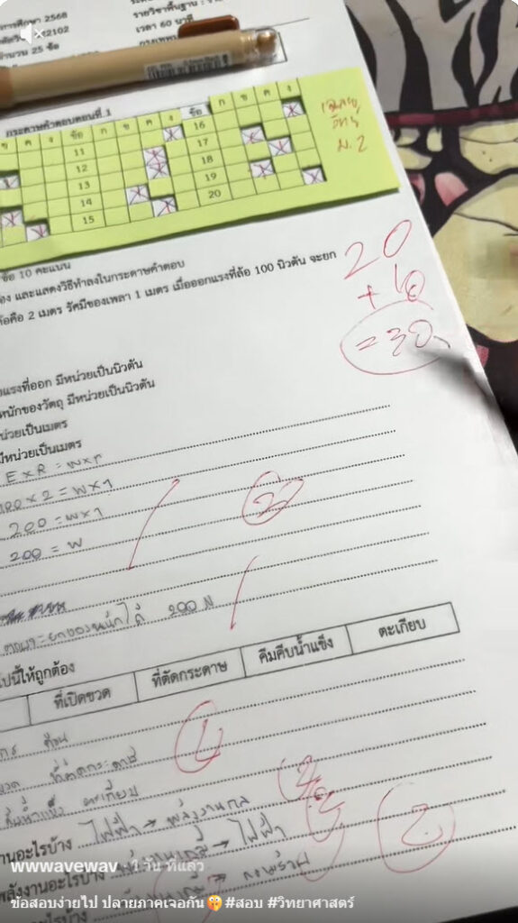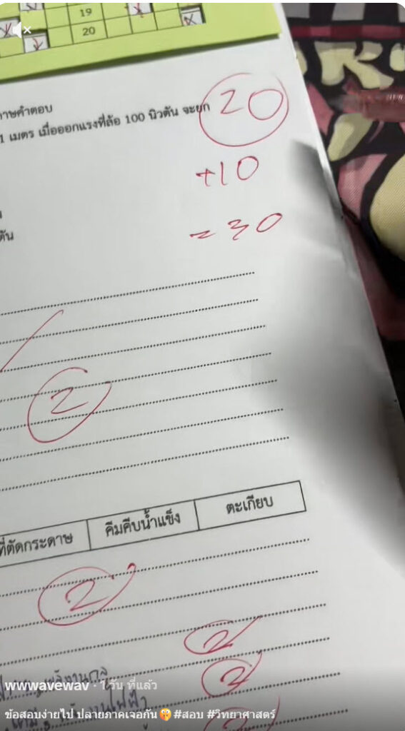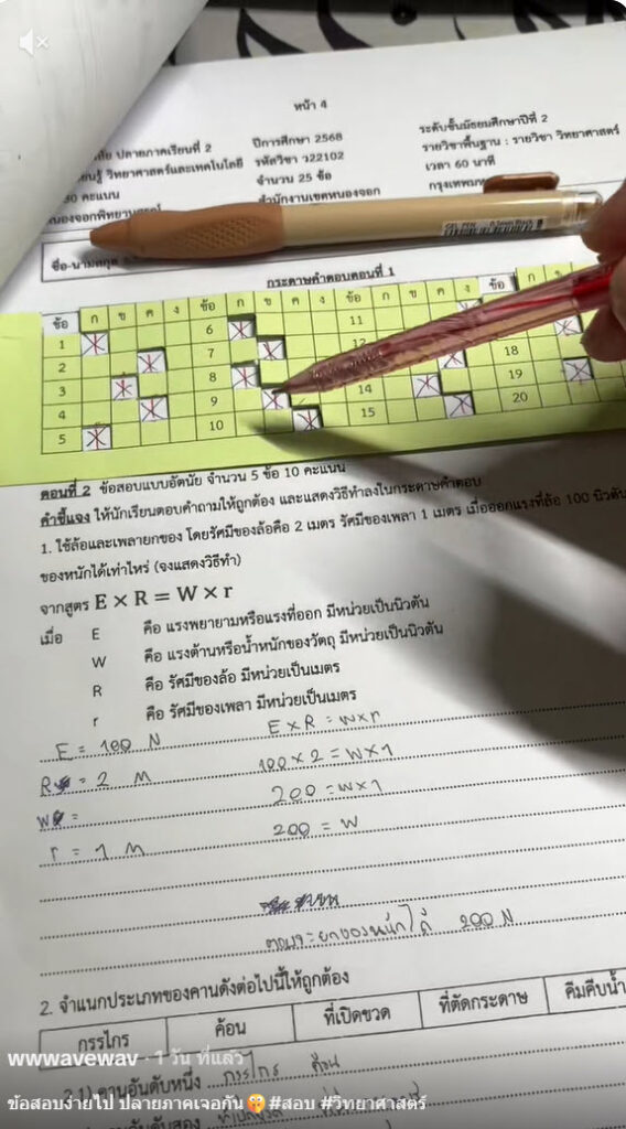 โดยจากในคลิปนั้นเป็นข้อสอบวิทยาศาสตร์ ซึ่งนักเรียนสามารถทำข้อสอบปรนัย และอัตนัย