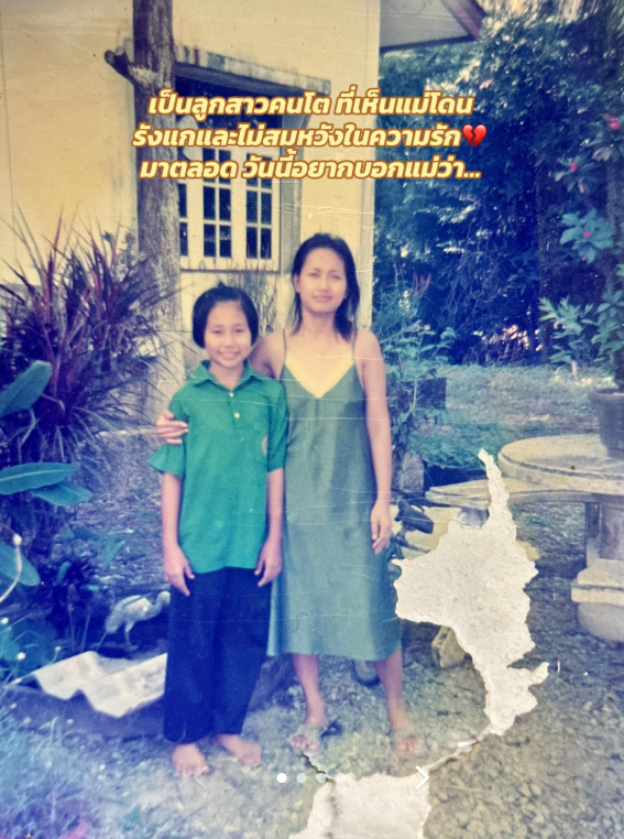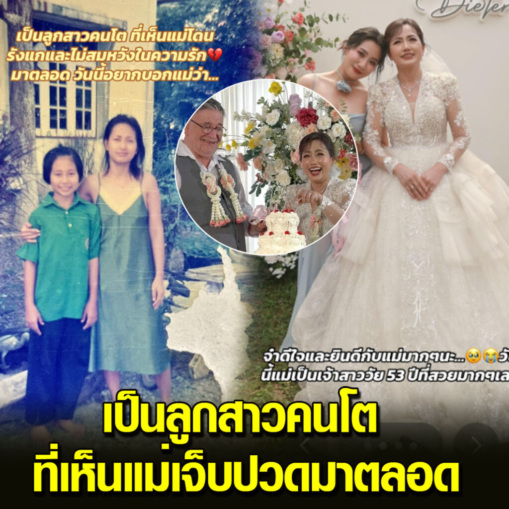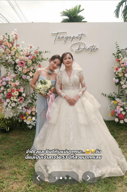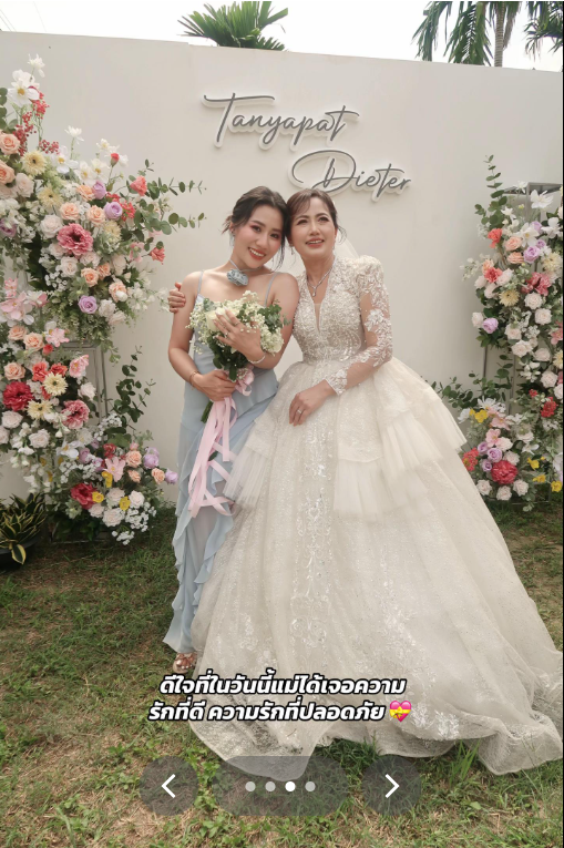“ความในใจจากลูกสาวคนโต…ถึงแม่ ลูกสาวคนโตที่เห็นแม่เจ็บปวดจากความรัก โดนรังแกมาตลอด แม่เลี้ยงเดี่ยวที่เก่งมากๆและอดทนกับความลำบากมาตลอด วันนี้เหมือนได้ส่งแม่เข้าถึงฝั่งฝันแล้ว ผู้ชายที่พิสูจน์มา 10 กว่าปีแล้วว่ารักแม่และเป็นที่ปลอดภัยกับแม่ได้จริงๆ”