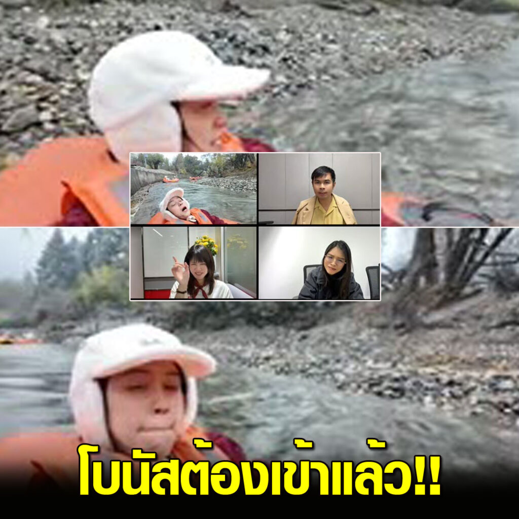 โดยจากในคลิปคือในระหว่างเที่ยว กำลังล่องแพอยู่ในลำธาร แต่หัวหน้าเรียกประชุม ก็เลยได้ประชุมทั้งที่เที่ยวอยู่